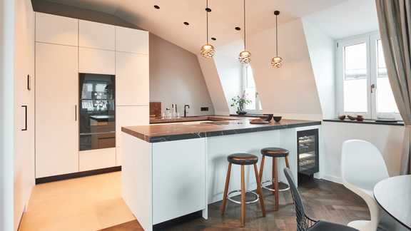 • Integrare il piano cottura nella penisolal. In questo modo si crea un concetto di stanza aperta e ariosa e ci si trova al centro dell'attenzione quando si cucina.