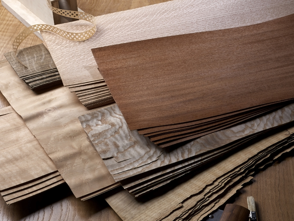5. Applicazione degli impiallacciati su materiali di supporto e successivo trattamento della superficie con vernice, olio o cera.