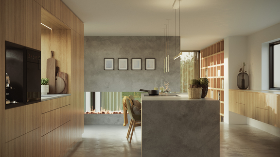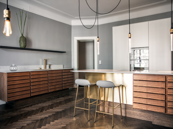 La cucina veneer offre l'equilibrio ideale tra l'aspetto naturale del legno e la perfezione tecnica - soprattutto per i concetti di cucina moderna dalle linee pulite.