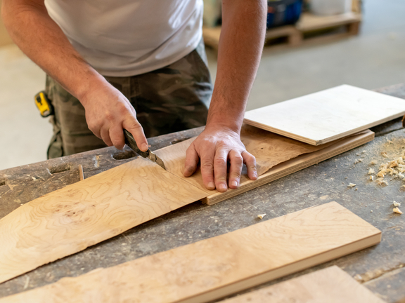 La produzione di impiallacciatura è un preciso processo manuale in cui il legno viene lavorato in strati particolarmente sottili senza perdere la sua struttura.