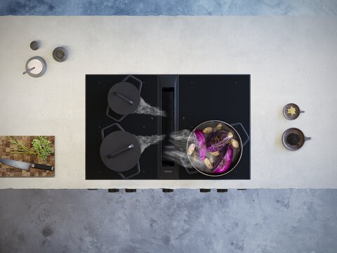 Un estrattore per piano cottura è la soluzione ideale per una cucina con tetto spiovente, in quanto estrae i vapori verso il basso, direttamente sul piano cottura, prima che possano salire nella stanza. Mentre i tradizionali cofani di estrazione su pareti inclinate spesso richiedono progetti speciali complicati o occupano spazio prezioso, un sistema downdraft come quello di BORA offre la massima libertà di progettazione. Questa tecnologia innovativa consente di posizionare il piano di cottura in modo flessibile, anche direttamente sotto una pendenza o davanti a una finestra.