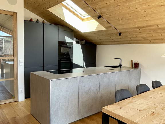 La progettazione della cucina può essere una sfida in una casa con soffitti spioventi. Per molti, gli attici emanano un fascino particolare. Spesso offrono una pianta insolita, creano tensione nell'insieme con travi a vista, i lucernari lasciano entrare molta luce e permettono di godere di una splendida vista. Tuttavia, la mansarda di solito perde molto spazio a causa dei soffitti inclinati. Oltre a un aspetto estetico e ordinato, la funzionalità della cucina gioca quindi un ruolo importante: La sufficiente libertà di movimento e la pratica sistemazione di utensili e alimenti garantiscono una cucina comoda e un'atmosfera abitativa perfetta.